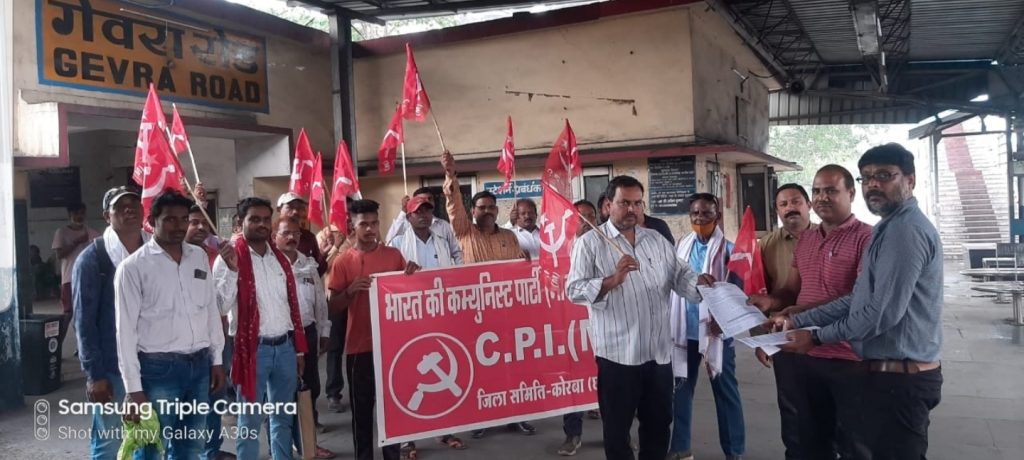 कोरबा। कुसमुंडा के गेवरा रेल्वे स्टेशन से बंद यात्री ट्रेनों को चालू करने की मांग पर मार्क्सवादी कम्युनिस्ट पार्टी ने आज गेवरा स्टेशन पर प्रदर्शन किया तथा डीआरएम के नाम ज्ञापन सौंपकर 26 जुलाई को रेल का चक्का जाम की चेतावनी दी है।